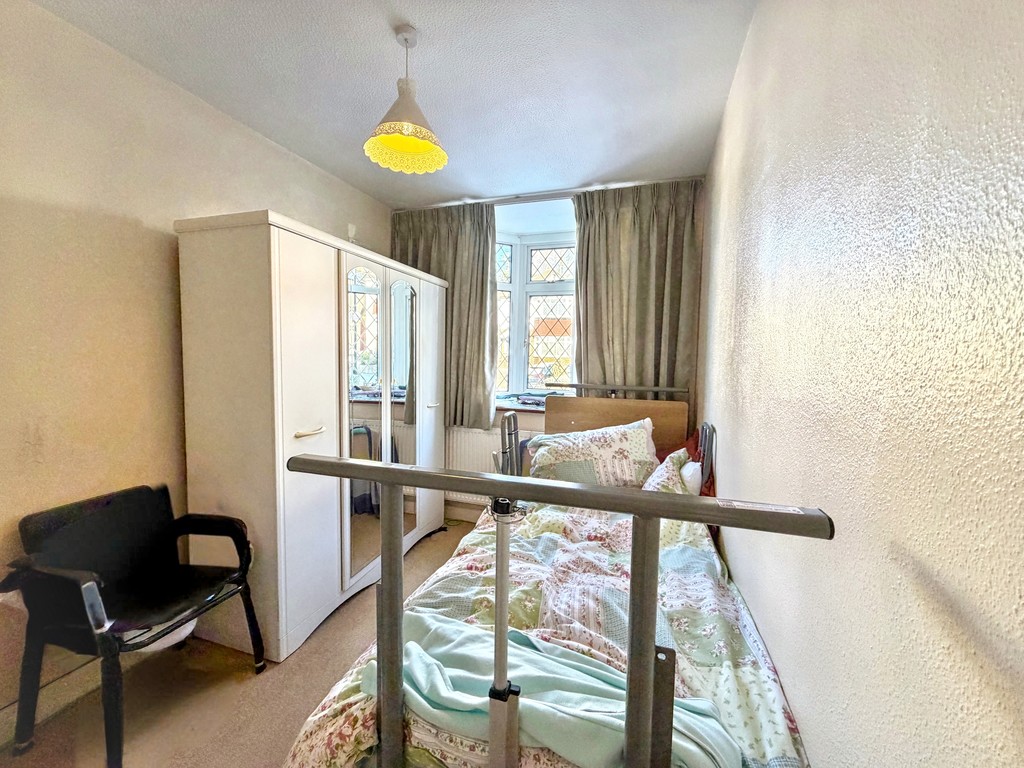 The home backs onto an impressive south- facing garden measuring approximately 200ft, allowing for an abundance of natural sunlight throughout the day. The size of the plot offers great potential for extension subject to planning permissions, making it an ideal opportunity for buyers looking to create their long term family home. The garden also benefits from a garden room and shed, as well as beautiful views over farthing downs. The kitchen and bathroom have recently been rewired, providing peace of mind for the next owners. Upstairs, there are two well- proportioned bedrooms, with the main bedroom featuring a small adjoining space that is highly versatile and could be used as a dressing room or home office, along with a convenient additional WC. Downstairs on the ground floor you find the third bedroom, also a lovely space with a stunning bay window.