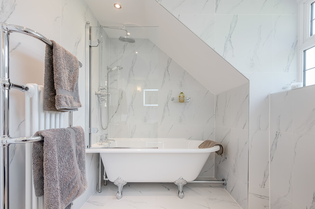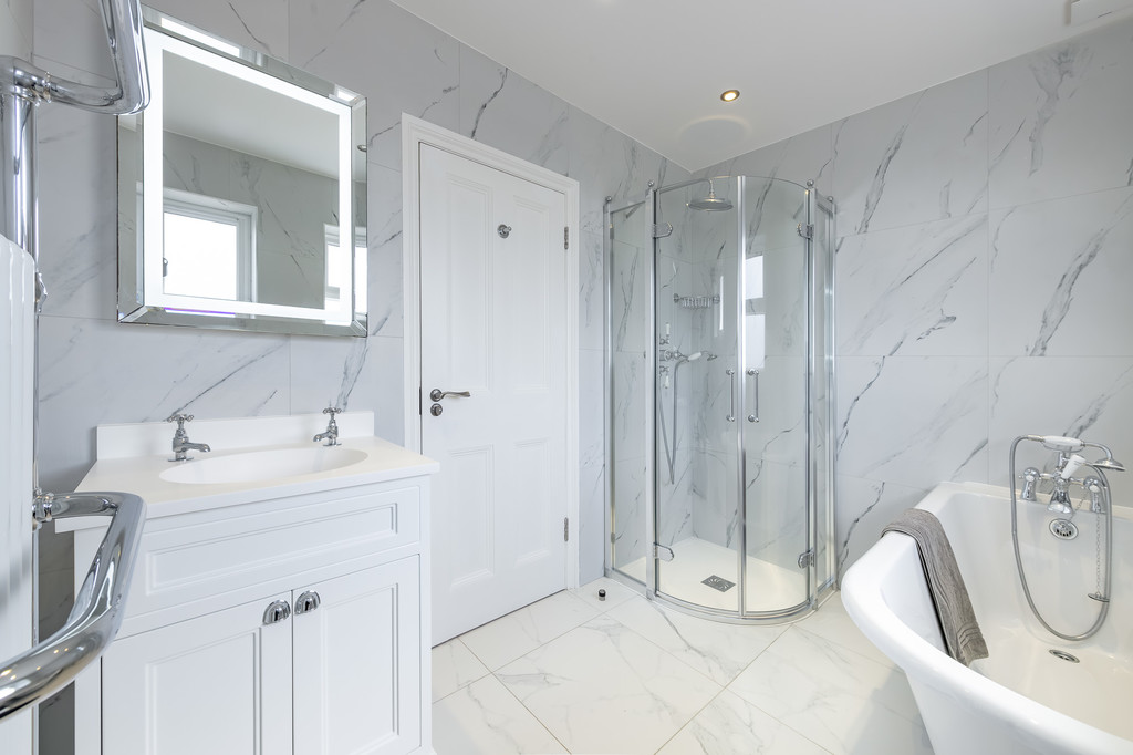 Rising to the first floor, you'll find four well-appointed bedrooms. Two of the bedrooms benefit from excellent fitted storage, while the principal bedroom boasts a charming deep, square bay window and a modern ensuite bathroom with Burlington fittings. The family bathroom, serving the other bedrooms, features a freestanding bath, a cubicle shower, a W.C., a basin, and a heated towel rail. There is further potential to extend for those wishing to add further bedrooms (STPP).