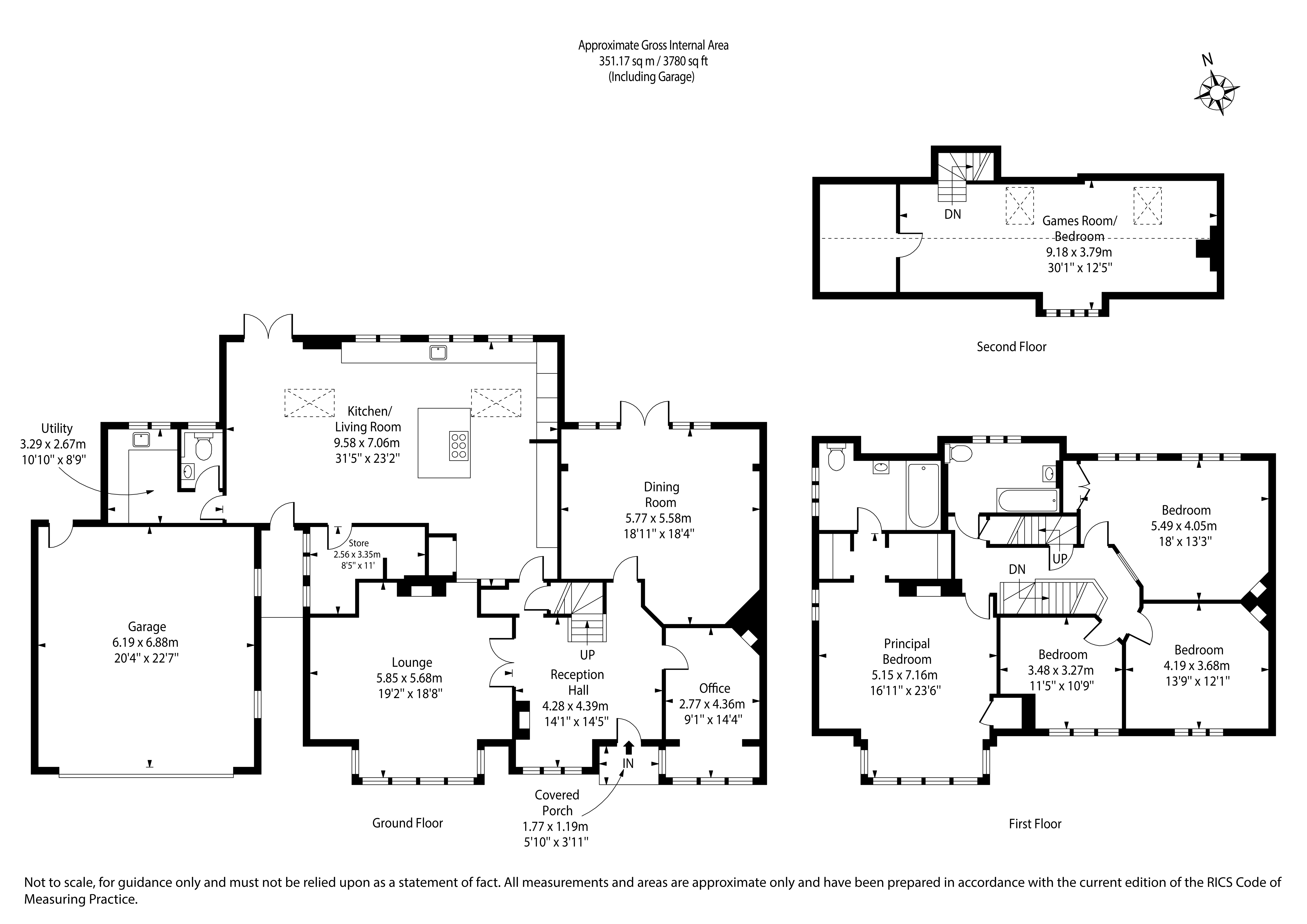 As you cross the threshold, you are greeted by a large welcoming hall with period fireplace and herringbone parquet flooring which also runs through the three generous reception rooms to include a lounge to the front with square bay window, dining room to the rear with access to the garden and an office/playroom to the front. It is however, the stunning kitchen/living room that is the heart of this home. Comprising a range of shaker style units and large island, this is a superb place to entertain friends and family or simply to relax at the end of a long day. Two roof lights allow light to flood in and there are windows and doors overlooking and accessing the rear garden. There is a useful store room, utility room and cloakroom. Upstairs, there four/five double bedrooms comprising a substantial principal bedroom with two walk-in wardrobes and an en-suite bathroom. Three further double bedrooms and a family bathroom complete the first floor and a further staircase rises to a games room/5th bedroom on the second floor.