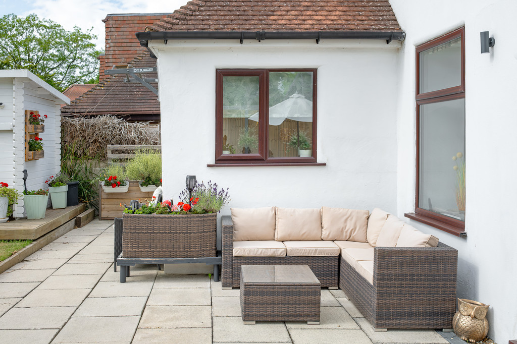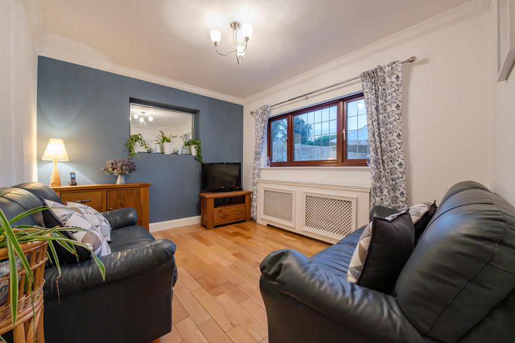 Outside, the rear garden extends to approximately 106' x 52' and is laid to a level lawn, enjoying a westerly aspect. There is a large patio, perfect for alfresco dining and entertaining, and fencing and trees to the boundaries. There are two log cabins in the rear garden and to the front there is a cobble style driveway for several cars, a neat, level lawn and garage.