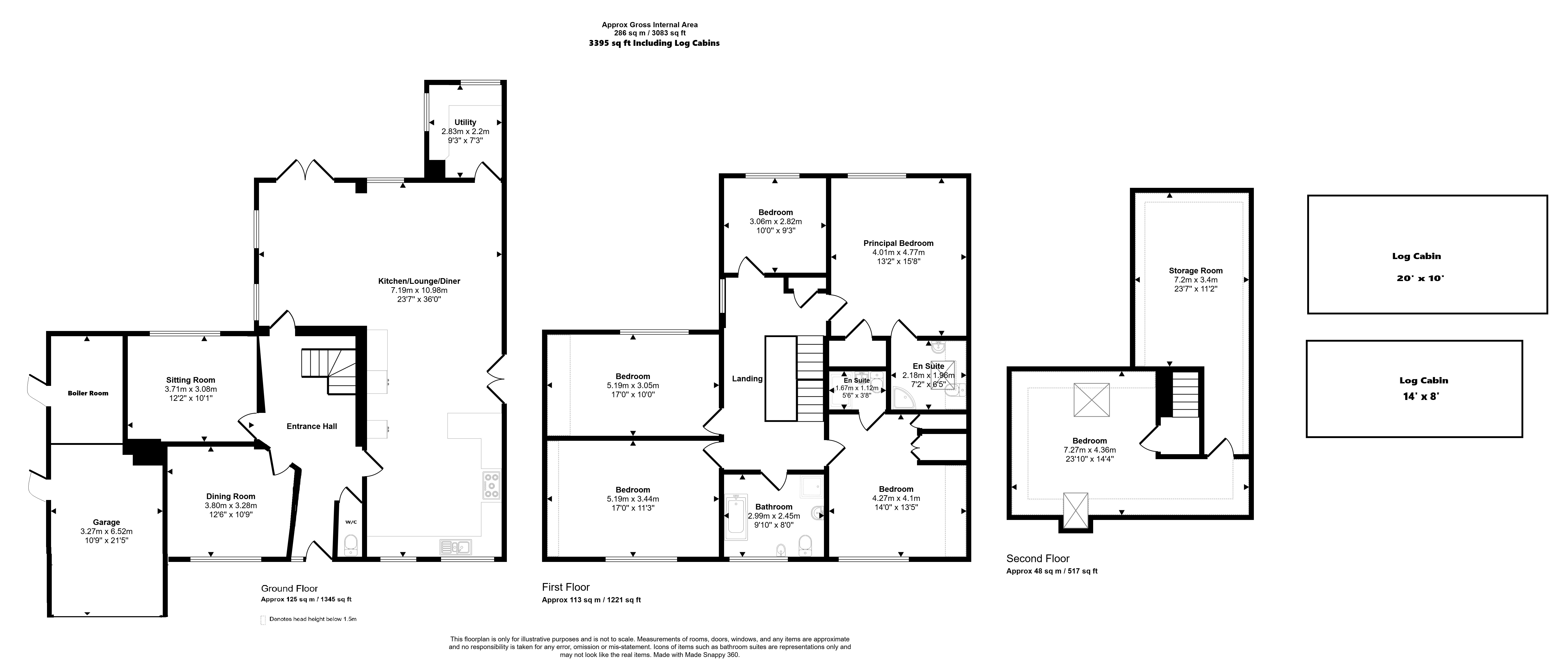 - 106' x 52' Level Rear Garden with Two Log Cabins